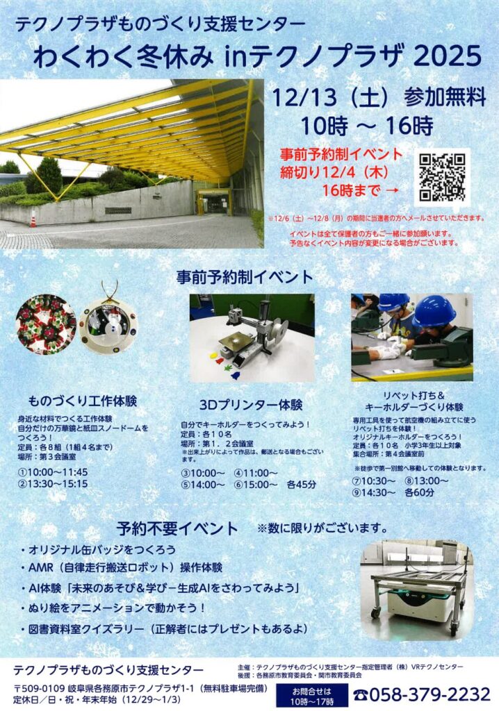 「わくわく冬休み in テクノプラザ2025」をテクノプラザにて開催します。